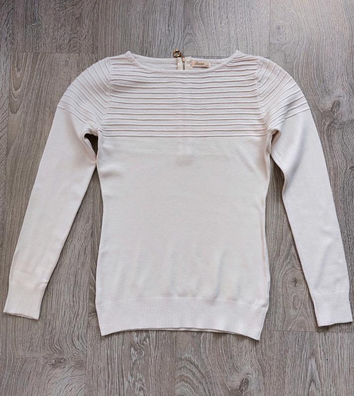Джемпер теплый, мягкий, приятный на ощупь, тоненький, материал шерсть 30%, кашемир 15%, полиамид 37%, эластан 18% Цвет слоновой кости, застегивается сзади на молнию, в красивом состоянии, кашлатостей нет Размер М/L длина 59 см ширина 38 см длина рукава от плеча 60 см Гарно тянеться