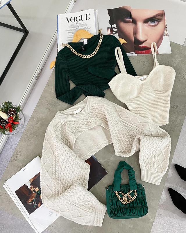 - Вкорочений светр (рукава) H&M 550грн Р-р S-M стандарт Рукав від коміра 72 - Топ Primark 300грн Р-р М Півобʼєм грудей 38 Довжина без урахування бретелей 32 Разом 750грн