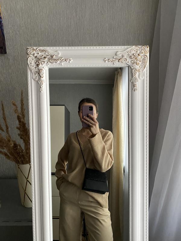 Кофта карамельного цвета с vвырезом, нить немного ворсистая, состояние идеальный, размер указан s, садится свободно. Замеры по запросу снабжа 😉