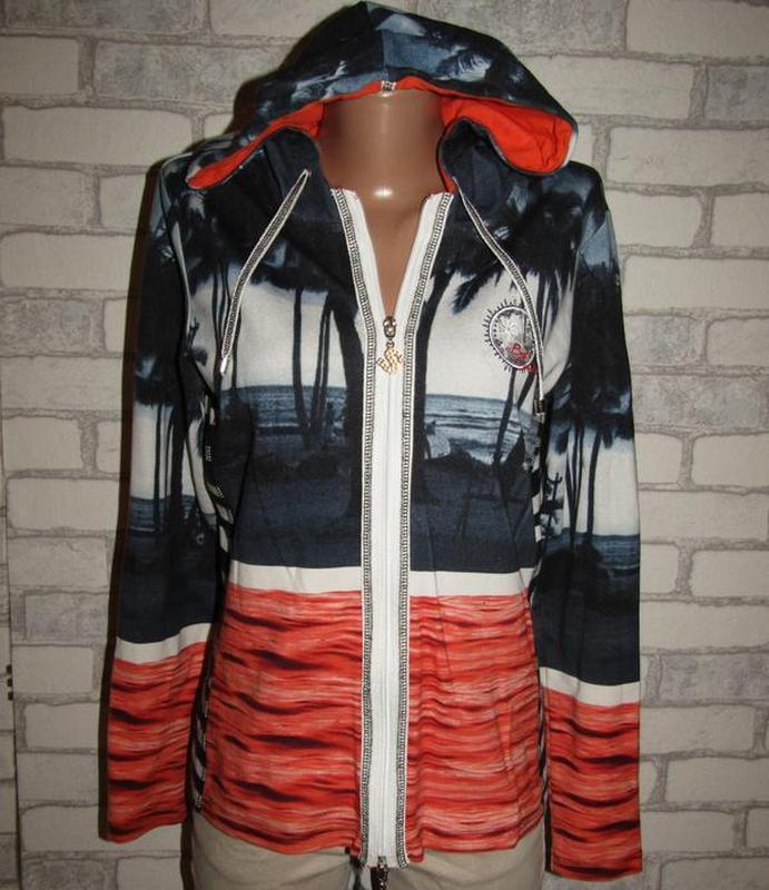 Тканина тягнеться. == длина 57см. ==полуобхват груди 50 до 54см. ==талии 44 до 49см. ==плечи 40см.рукав 59см. средняя, не грубая.без дефектов. Кофта с капюшоном л-12 bc