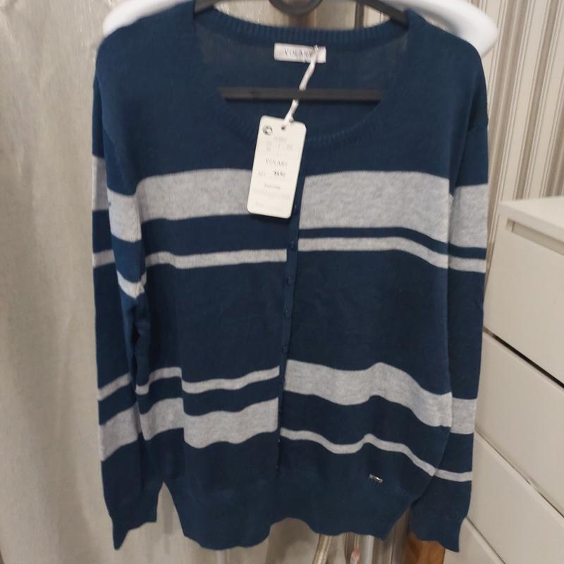 Джемпер трикотажний Туреччина Розмір не вказано, мабуть на XL-XXL_XXXL - дивіться заміри Склад: 52% cotton + 10% wool вовна + 10% spandex + 28% acryl Приємний на дотик, м'який, теплий Джемпер темно-синього кольору в сіру смужку і гудзиками, які просто пришиті, не розтігуються вони. Не просвічується Вимірі: Довжина – 66см ПО груди - 55см ПО талії - 52см ПО низа - 40см Плечі - 45см Рукав від горла - 72см Дивіться інші мої оголошення, речі у продаж через закриття магазину, є маленькі та великі розміри батал