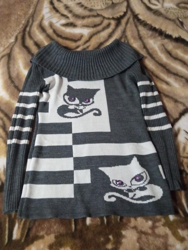 Оригинальный свитерик с котятами. ПОГ 48 см, рукав 59 см, длина 66 см.