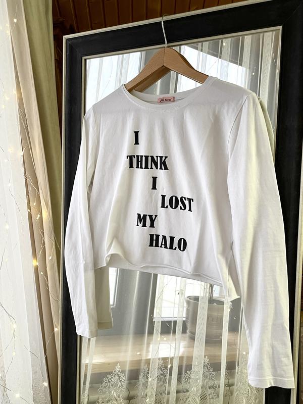 Белая укороченная кофта/реглан/пуловер/лонгслив с длинным рукавом с надписью в размере s-m