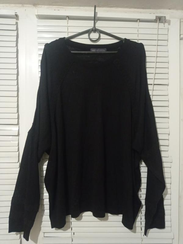 Тоненький джемпер, чуточку просвечивает, крой "летучая мышь", украшен кружевом, тянется, ПОГ 75+, ПОБ 73, длина 68