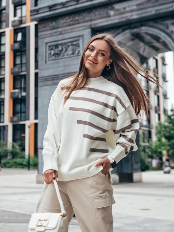 🔥Джемпер прямого кроя с спущенной линией плечевого шва. Манжеты и низ изделия выполнены резинкой. Спереду декорований контрастними смугами. ✔Размер универсальный 42-48 ▪️объем груди -118см ▪️длина изделия - 66 см ▪️длина рукава - 69 см. 🧵Состав: 80% хлопок, 20% полиэстер 🧵Материал: Трикотаж 🎨Цвет: молочный, бежевый, черный 💳Цена 1250грн Арт24295 ‼️Для заказа и детальной информации ndем в дырэкт, или комментарии ⤵️