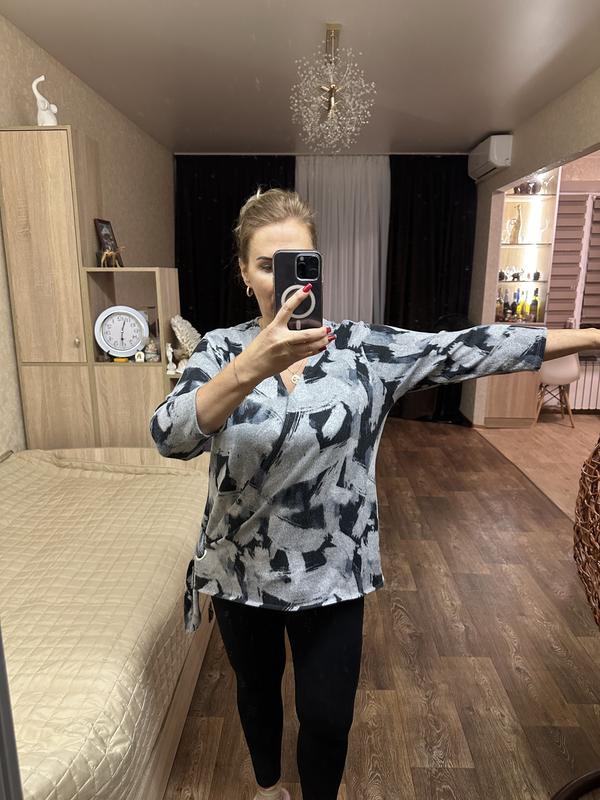 Довжина 70 Під грудами 120 , тягнеться Рукав 7/8 Мʼякенький та приємний на дотик Не мозната ангорка - трикотаж Перед на запАх Збоку - декор Дуже мʼякенька та комфортна Можна і в гості, і на роботу