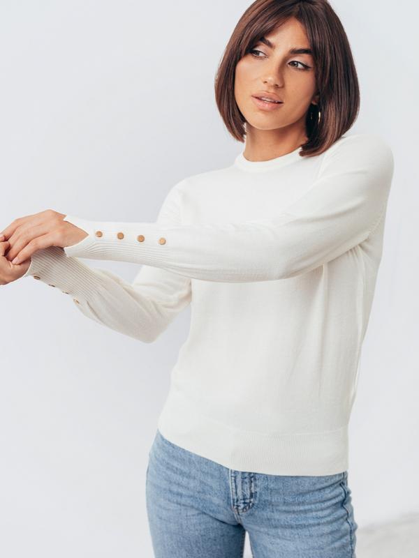 🧶Трикотажный джемпер из высококачественного турецкого материала. Изделие с круглым вырезом горловины. Манжеты декорированы пуговицами и разрезами. ✔Размер универсальный 44-50 ▪️Объем груди:88-98 см ▪️длина изделия – 59 см. ▪️длина рукава - 61 см 🎨Цвет: бежевый,черный, синий, молочный 🧵Материал: Вискоза 💳Цена 1090грн Арт90786 ‼️Сбор заказа 1-3 дня!!️