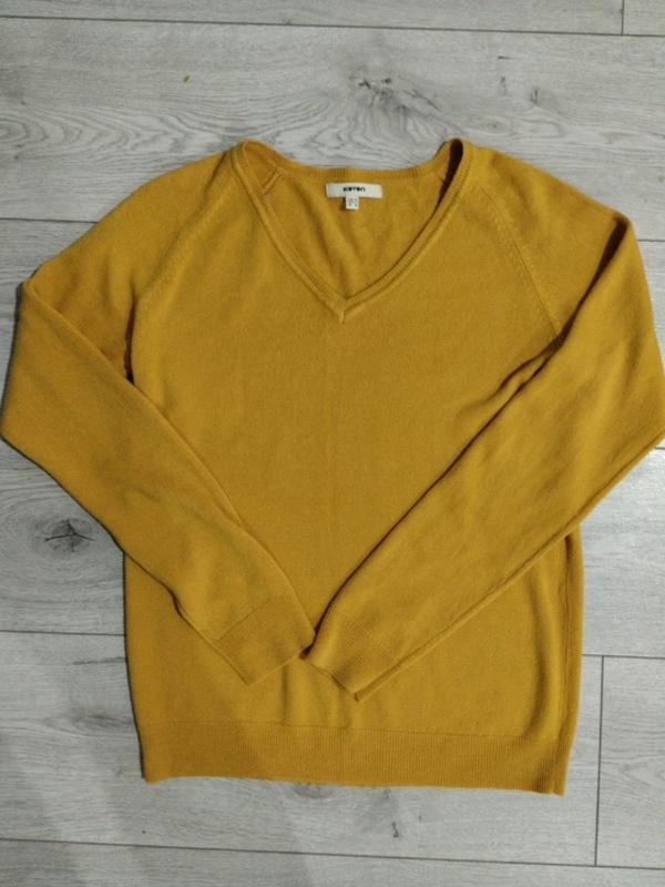 Кофта горчичного цвета. Приятная на ощупь. Состояние новой вещи. Без дефектов. Замеры проходила по рулетке. Длина 60, ПОГ 42, плечи 33, рукав 58/50, глубина декольте от плеча 17.