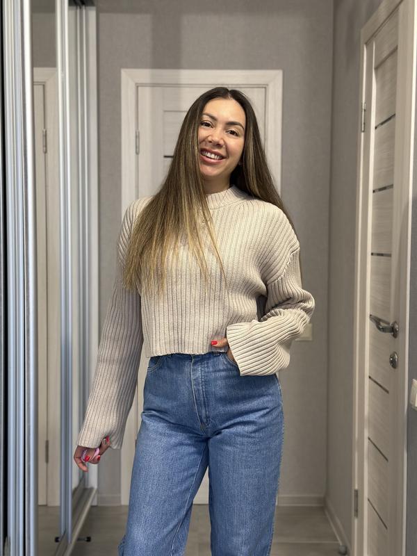 Кремовый джемпер H&M 💵 400 💵 💚 Размер S - Длина 46 - Подмышки 59 - Плечи 56 - Рукав 52 🌺коттон/полиакрил Состояние отличное 🖤 Мои параметры на фото : 85/68/92 , рост 162
