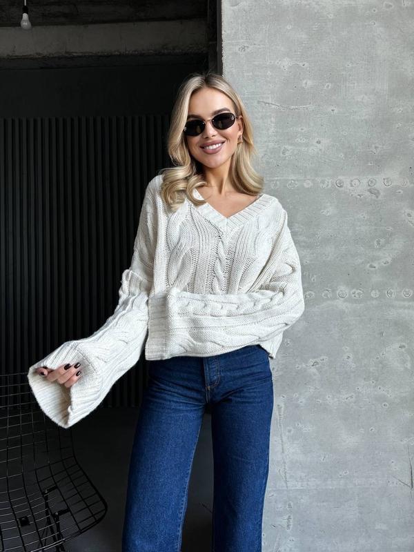 Теплий джемпер. Укороченная модель с оригинальной вязкой, Длинный рукав дополнен эластичной манжетой. Аккуратная горловина с V-образным вырезом. • Размер универсальный • Цена 1000грн 3938