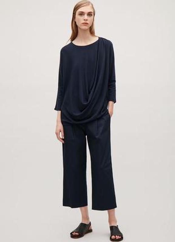 Оверсайз джемпер-туника COS. Ткань джерси тёмно-синего цвета. Рукав 3/4, цельнокроеный спереди . Спереди от левого плеча асимметричная драпировка. Длина от ворота по спинке посередине 63см, плечи 53см, рукав 37,5см, полуобхват от подмышки до подмышки по спинке 55см, полуобхват низа по спинке 50см. Все замеры по верху изделия в разложеном ( не от шва до шва), нерастянутом виде. Размер S-M. ✨✨✨✨✨✨✨✨✨✨✨✨✨✨✨✨✨ Оплата на карту, пересылка за счёт покупателя, наложеный платеж - только НП (160грн предоплата - услуга отправки НП в обе стороны). По Безопасной оплате не работаю. Отправка НП. Отправка УкрПочтой и Justin обсуждается предварительно, до заказа . Возврата и обмена нет. Личных встреч нет. Пожалуйста,обдумано подходите к покупке товара, вещь возврату не подлежит.ВАЖНО! Реквизиты для оплаты запрашивайте только в том случае если вы на 100% уверенны в покупке. Выбор всегда за Вами.