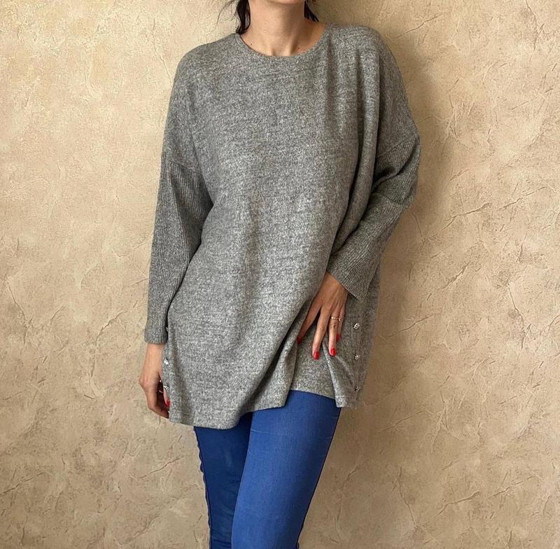 Дуже м’якенький наче плюшевий подовжений джемпер від George (Великобританія)🤩 53% віскоза🥰 Новий, з біркою Прикрашений з боків дуже гарними блискучими ґудзиками зі стразами💎 Розмір Xl (на фото М) Довжина 75 Рукав від горловини 68 ПОГ 67