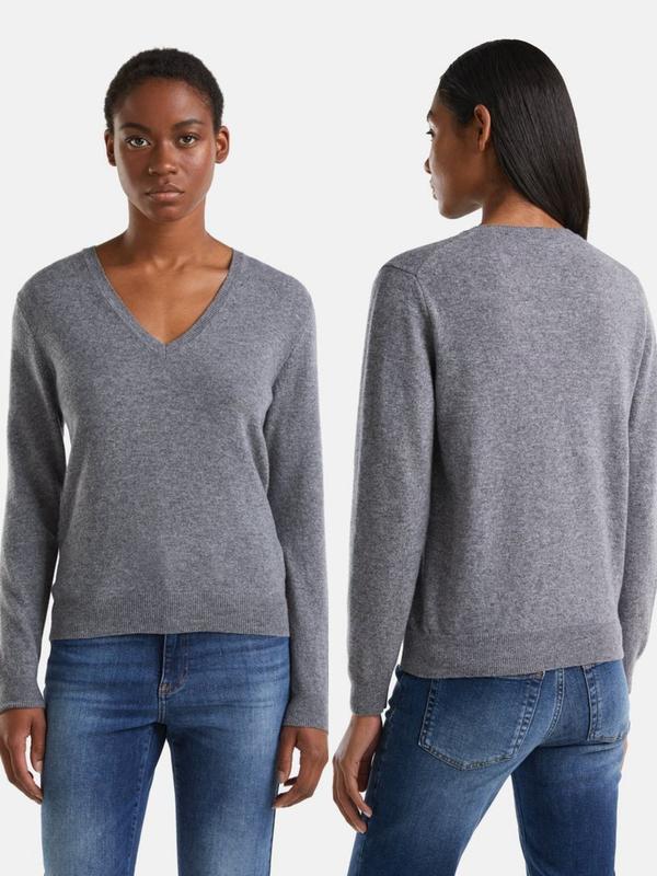 🌸В наявності Sisley ,100%,wool-якісна вовна ,не кусається !!! Дуже класний м'ягенький джемпер з V-образним вирізом,розмір повний М-L. Без ньюансів!!! Довжина 64 Плечі 42,5см Підмишки 51 Ширина 48 Довжина рукава 68 🌸 #сірийджемпер#вовнянийджемпер #жіночийсветр #стильcos