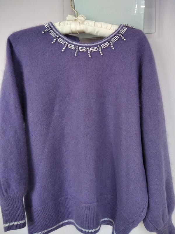 сиреневый, застежка на пувицы, длина 60,рукав от горловины 68, резинка внизу Поб-45 см, ангора, немного вытерто по бокам(ост. фото), Бирки со складом нет