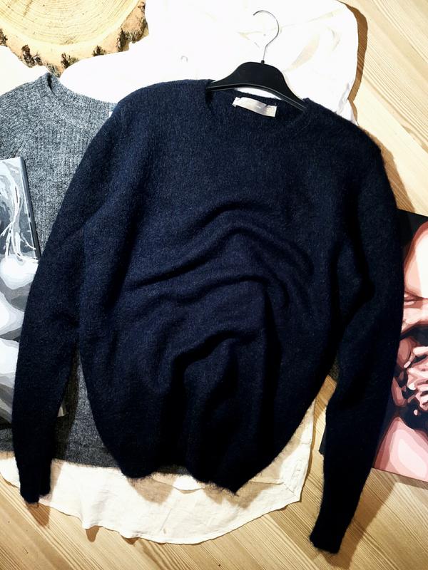Теплый джемпер махер (S-M) Темно синий Длинна от ворота/плеча 63/60 см По плечам 40 см Ширина под ручками 51 см Ширина внизу резиночки 42 см Рукав от ворота/плеча 76/62 см Состояние как новый