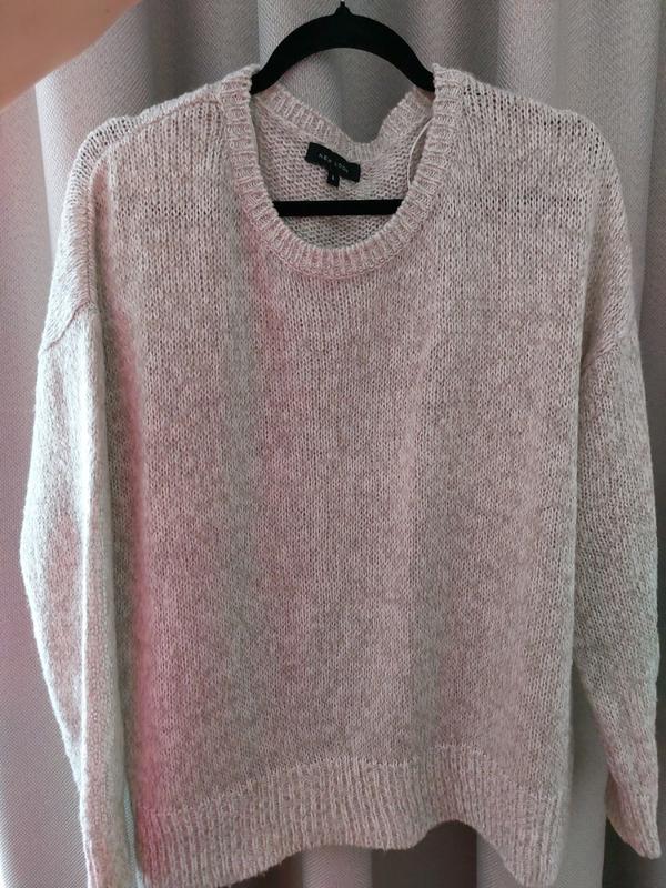 Красивый свитерик, садится свободно, легкий, размер Л, можно на М как оверсайз, цвет более до светло серого, по бокам разрезы