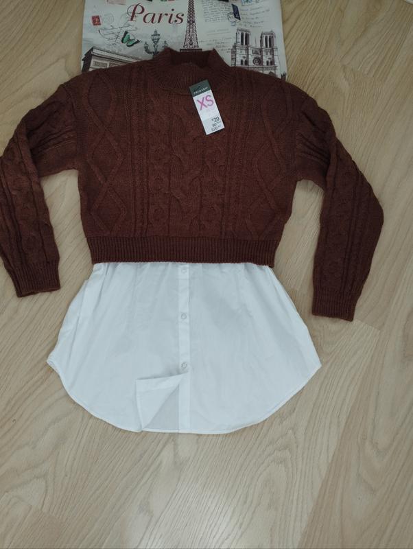 Нова стильна кофта 34-36 з імітацією рубашки, колір коричневий, візерунок косички, дуже приємна до тіла