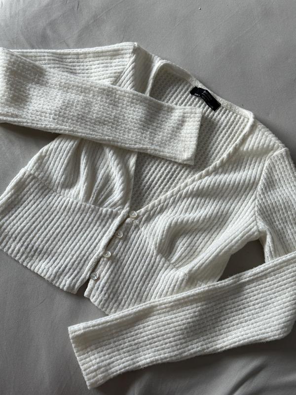 новенький топ bershka s замеры: длина рукава 57 см длина по спинке 36,5 пог 39 см пот 34,5 ткань тянется таочень мягкая и приятная к телу