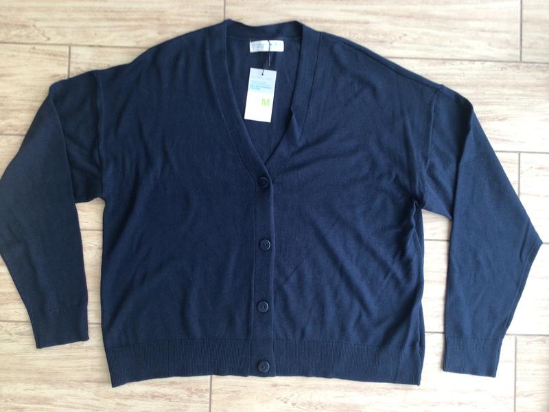 Вискоза трикотажная кофта на пуговицах от известного бренда Primark. Из Германии. Размер L. Темно синего цвета. Состав материала на бирке на последнем фото. Замеры М/L Ширина по плечам 58/60 см (приспущенные плечи) Длина рукава от плечевого шва 50/51 см, от выреза 74/77 см, край рукава на эластичной манжете. Полуохват груди 53/59 см Ширина внизу 52/53 см, низ на эластичной манжете Длина по спине 59/59 см Настоящее немецкое качество!