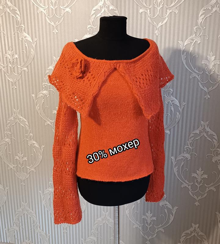 12 Кофта бренду Griffin Склад: 30% мохер, 65% акрил, 5% еластан Стан - идеальный Дефектов нет Замеры: Рукав от горловины 70 см ПОГ 40 см, тянется до 50 см ПОТ 38 см По низу ПО 42 см Длина от плеча 52 см