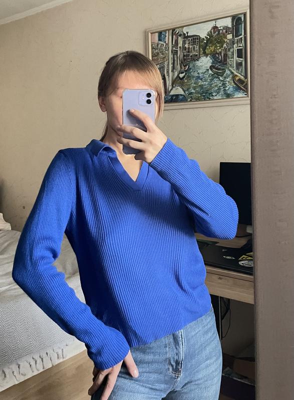 Светр поло в насиченому синьому кольорі. Дуже мʼякий. Стан нової речі. На обхват грудей до 92. Довжина 56, рукав 65. Бірки та етикетки зрізані.