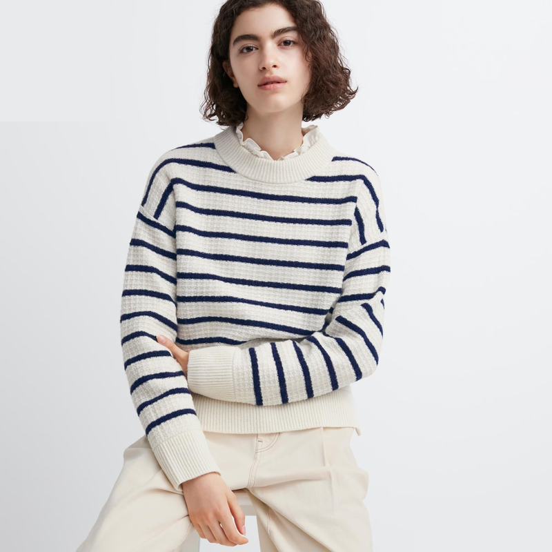 Склад: 100% вовна Premium Lambswool Long Sleeve Sweater колекція COMPTOIR DES COTONNIERS легкий і повітряний, але теплий комбінована смужка та грайливий трикотаж розслаблений крій з прорізами