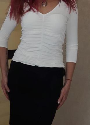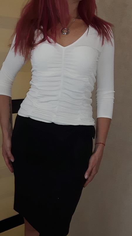Изысканный топ Sportmax (Max Mara) из дорогого качественного трикотажа. Изнутри вдоль прошиты резинки, благодаря которым получается очень красивая драпировка. Смотрится очень элегантно и дорого. Цвет айвори - изысканный оттенок белого, связанный с вековым понятием роскоши. Длина - 55 см., ОГ - 84 - 92 см (очень хорошо тянется!)