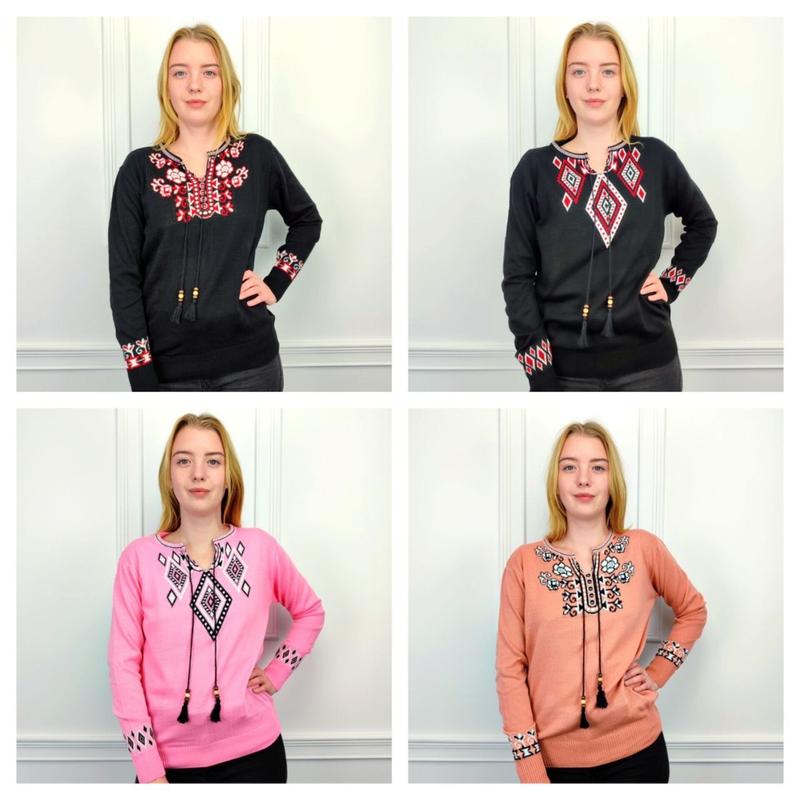 ❗❗❗УНІКАЛЬНІ КОЛЬОРИ У ОБМЕЖЕНІЙ КІЛЬКОСТІ ❗❗❗ 🙈🙈🙈 НОВІ МОДЕЛІ 🙈🙈🙈 💥💥💥💥💥Джемпер вишиванка норма 💥💥💥💥💥 🧵Тканина: вовна/акрил 30/70 📏Розмір: універсальний (42-48рр) ✂️Виміри: ПОГ: 47-48 см; довжина рукава - 56 см; довжина виробу - 58 см. 🇹🇷Виробництво: Туреччина 🌈Колір: Як на фото
