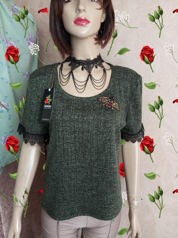 женская блузка ангора трикотаж цвет хаки с чёрным пог 48-50 см, длина 56 см,
