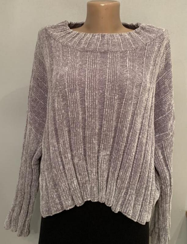 Стильный современный джемпер в широкий рубчик, мягкий, велюровый, щадящий нежный трикотаж,серый цвет с легким перламутровым переливом.Очень эффектный, качественный.Модный фасон- широкий,укороченный.Легко растягивается.Пог,ПО низу 72 см,длина 46 спущённые 79 см, длина рукава от горловины 68 см