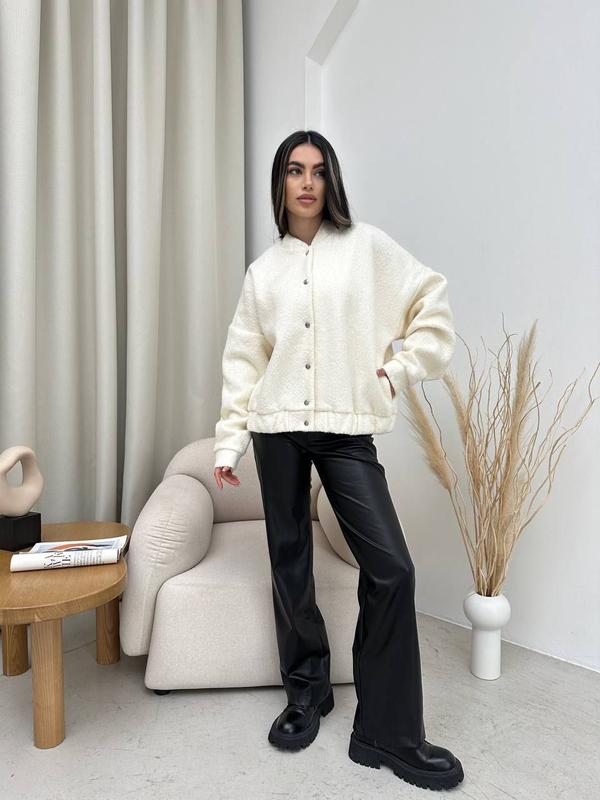 Бомбер свободного кроя на кнопочках имеет две карманы, изготовленные из качественного материала ✅ Модель идеально подойдет под любой образ. Хорошо смотрится с джинсами, юбками и классическими брюками. ▫️Модель 833/а19 ▫️Ткань букле Турция ▫️Размер 42-48 универсальный ▫️Цвет пломбир, голубой ◻️Замеры ▫️Груди 130 ▫️Рукав с плечом 82 ▫️Длина 64