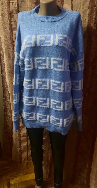 Теплая туника-свитер. Круглый ворот. Прямой фасон. Размер:56-58.