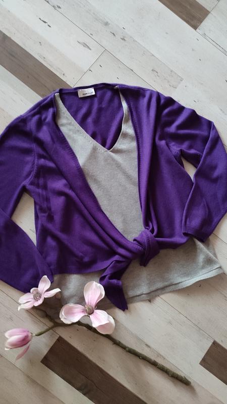 FRANK WALDER Немецкая одежда премиум класса дает возможность выглядеть великолепно, при помощи безграничного количества образов и возможности переключаются между элегантным, повседневным, экстравагантным или романтичным образом. Джемпер очень интересный. К передней части джемпера ( серого цвета ) по боковым швам вшит фиолетовая часть , которую можно красиво завязать впереди, что может скрывать выпирающий животик ..Спинка фиолетовая , но по низу вшита серая часть джемпера. Я покупала его для себя и поэтому бирку с составом мне пришлось отрезать. Но, на ощупь очень приятный и мягкий трикотаж. Мои замеры в см.: ПОГ- 54 см, ПОБ -54 см; Длина- 65 см, Рукав- 60 см. Будут вопросы с удовольствием отвечу))).