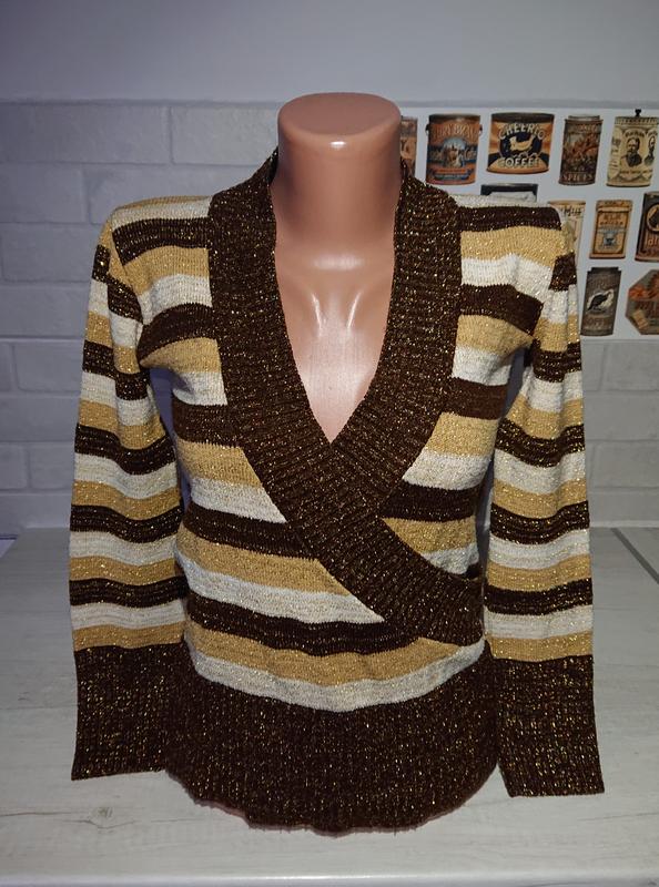 Женский базовый свитер на запах в полоску с люрексной нитью, состояние идеальное Размер наш 42 /44 Замеры Длина ок 56 Пог 45/48