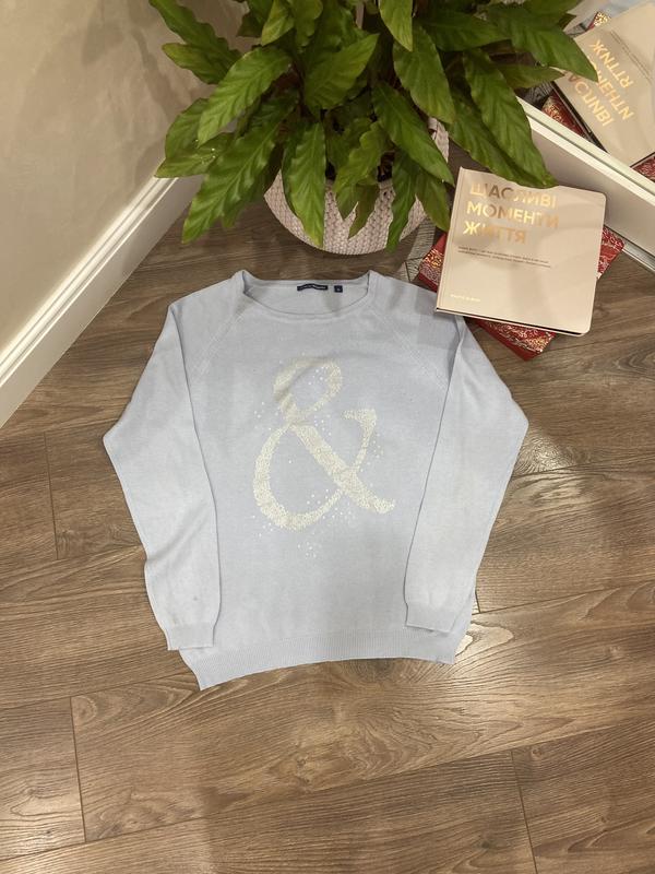 Блакитна жіноча кофта у розмірі S. Довжина – 59 Бюст – 48 По лінії низу – 39 Рукав від горловини – 66 Склад: 50% котон, 50% акрил