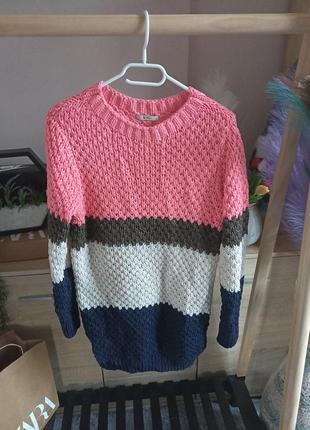 Стильний контрастний джемпер TU. Розмір 10📍 Склад: 91% акрил, 9% поліамід Скрізь тягнеться +10-15см Заміри: 📌ПОГ 49см; довжина від плеча 71см; плечі 39см; рукав 59см; ширина напівобхват по низу 39см.