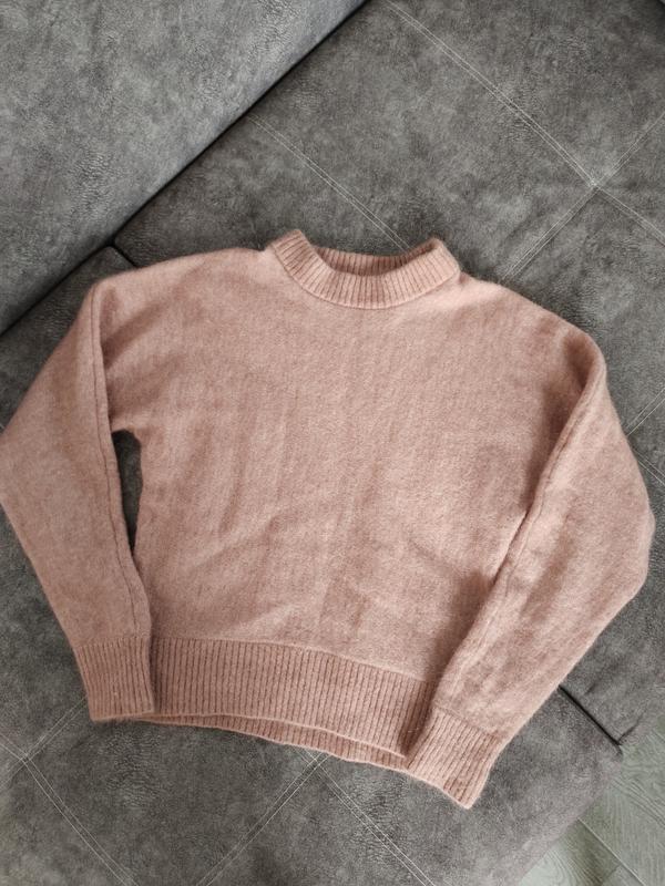 У складі поліамід, мохер та вовна, тож светрик колючий, "кусається" Рукав від горловини 72,5 Ширина під рукавами 47 Ширина внизу 39 Довжина 56