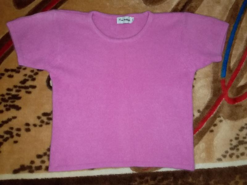 Джемпер з ангори розмір S/M довжиною до талії, виміри в нерозтягнутому стані об'єм талії 80см, довжина від плеча до низу кофти 46см, відстань від плеча до плеча 38см, об'єм грудей 86см.