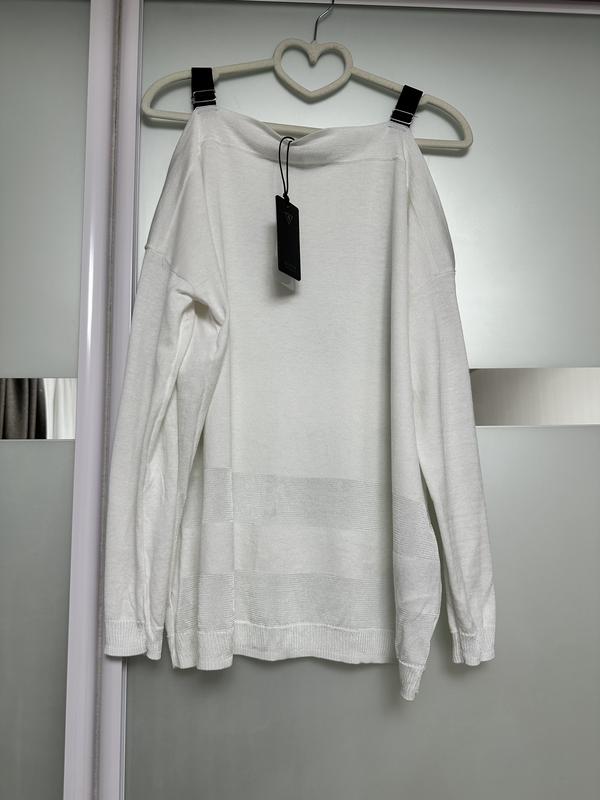Ніжна стильна і дуже гарна кофта від відомого бренду Guess. Плечі відкриті. Тканина ніжна і трішки просвічується. Купували на офіційному сайті, але так і не вдягнула. Заміри на фото.