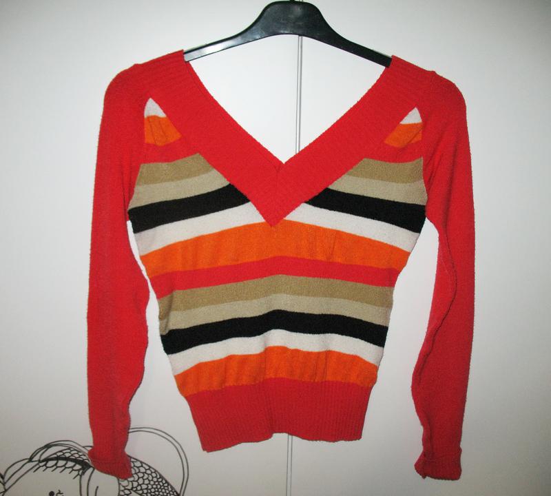 Джемпер яркой расцветки с V-образным вырезом.