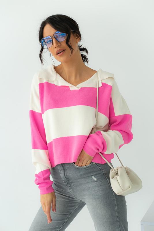 Свитер с воротничком в крупную полоску, смугастий светр-поло,джемпер поло, кофта полоска ш...
