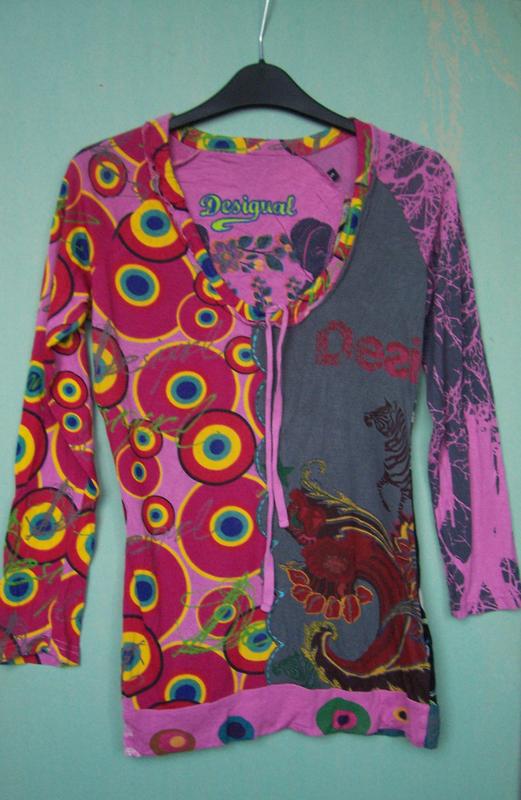 Очень интересная кофточка-туника культового испанского бренда "Desigual" с рисунком "Анимэ", размер S. Замер по груди 42-44 см