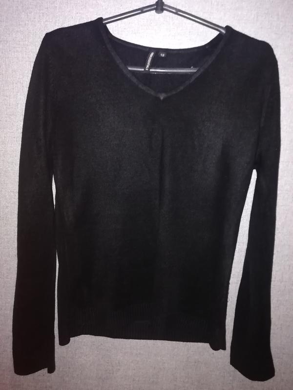 Продам новий жіночий з натуральної шерсті тоненький джемпер чорного кольору, новий. Розмір 44. Довжина джемпера 60 см, рукава 65 см, ширина плеч 40 см, в поясі 45 см, по кругу ОГ 104 см. Заміри без розтягнення.