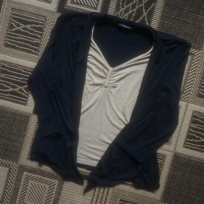 В идеале, вискоза, тянется, очень хороша в реале. Топ вшит. Плечи 42 Рукав 44 Груди 51 Талия 44 Длина 55