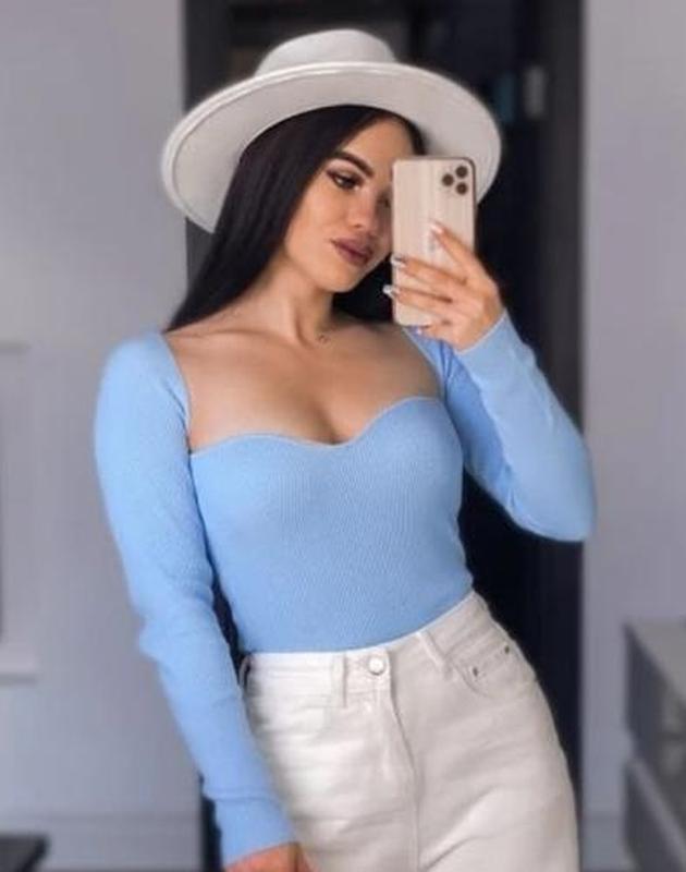 Суперстильная кофточка, которая популярна и Вы видите её на инфлюенсерах в инсте и тиктоке, секси=декольте, но не слишком откровенное. Приятная ткань. Цвет нежный, голубой. Будет супер на весну и лето. Новая, с биркой Размер XS-S