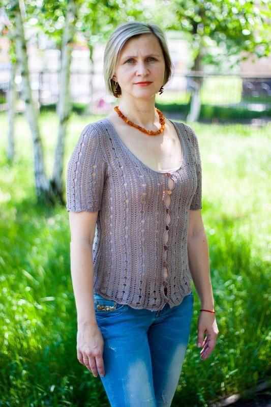 Летняя ажурная кофточка из пряжи бамбук очень приятная к телу,мягенькая