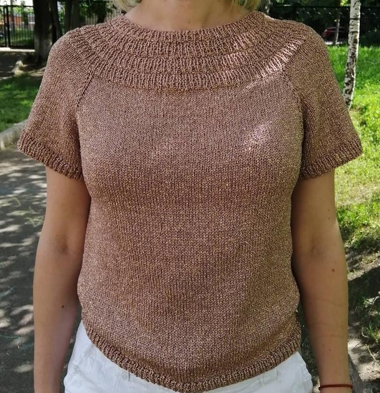 Топик связан спицами из вискозы с золотистым люрексом. Размер 46. Длина изделия 52см