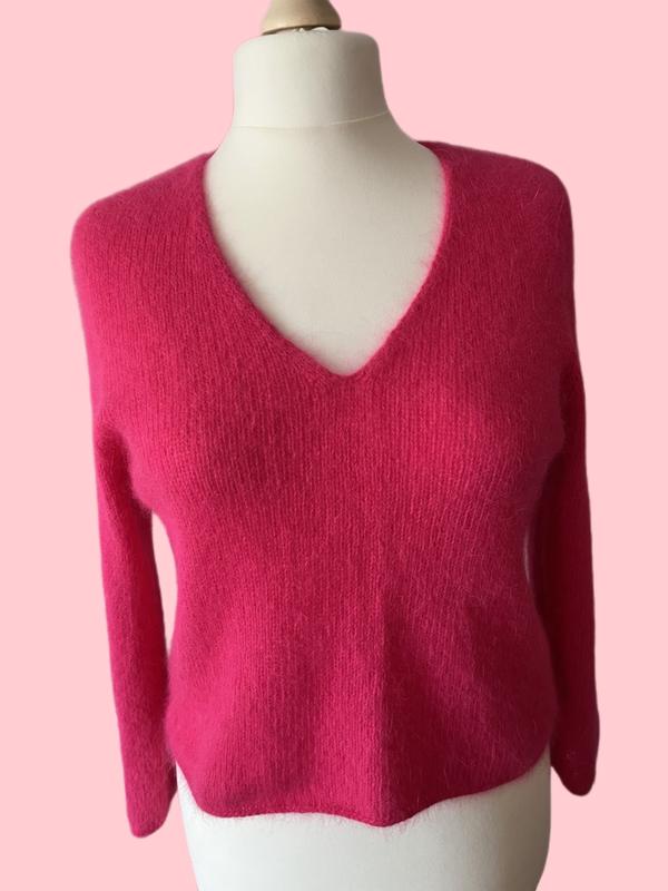 Джемпер зв'язаний спицями. Легкий, яскравий та теплий! Пряжа Ангора 70%, вовна 10%, нейлон 20%, в одну нитку. Колір: барбі. Довжина 60 см, ширина 54 см. Підійде на розмір M/L (48-50).