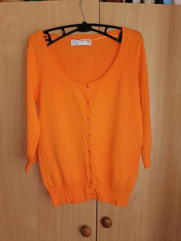 Яскрава помаранчева кофта Zara. Розмiр L. ПОП 40 см, ПОГ 48 см, ПОТ 36 см, довжина 58 см, рукав 41 см. Матерiал котон, нейлон.