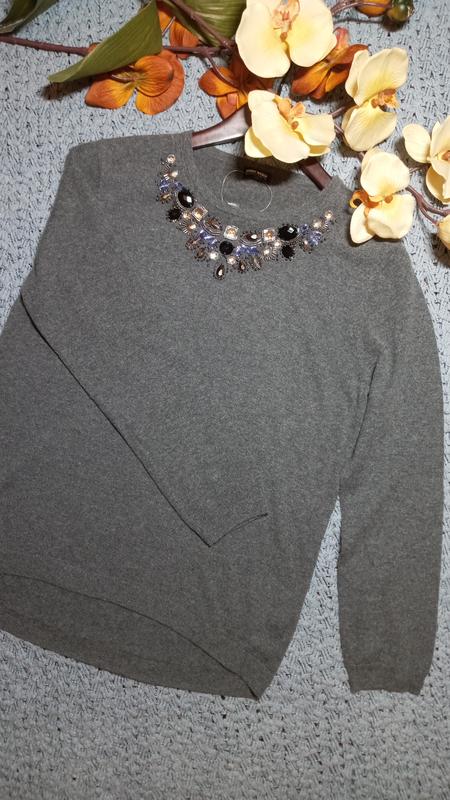 очень красивый джемпер намыщенного теплого серого цвета очерь хороший состав ткани:шерсть,кашемир,вискоза,полиамид,на ощупь очень мягкий и приятный к телу,оазмер 36,но подходит и на 38 ширина плеча 42 пог 49 длина рукава 57 длина впереди 61,сзади 69,спинка ниже чем перед оплата на карту приват или наложеный платеж по предоплате на доставку